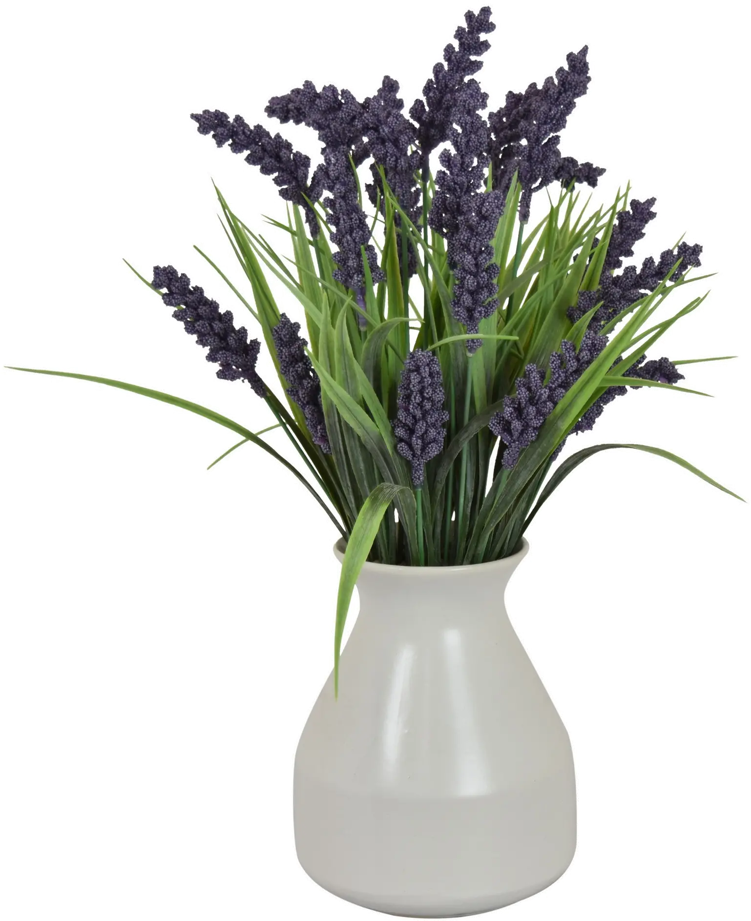 Artificial Green and Lavender Arrangement in Ceramic Container