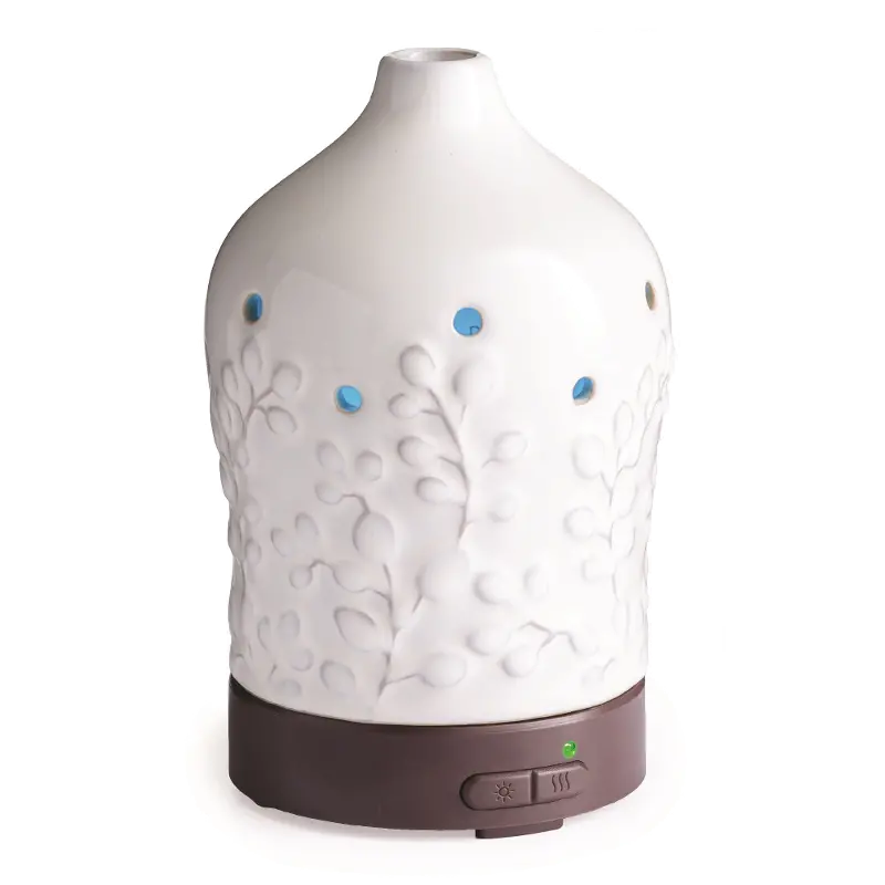 Now offered at RC Willey, this essential oil diffuser has a white reactive glaze body with an embossed willow branch.