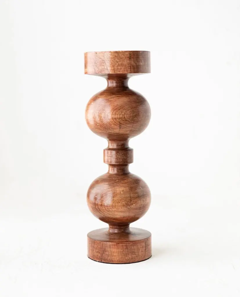 Made of mango wood, this 15-inch candle holder will make a statement in your home.