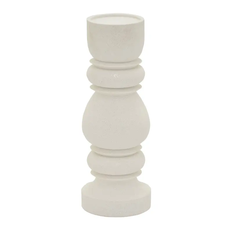 The stone look finish of this white candle holder from RC Willey will add style to your decor.