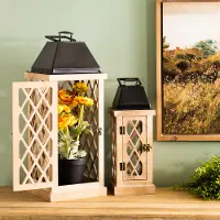Measuring 16" high, this charming wood and metal lantern will add a breezy, inviting vibe to any room in your home.