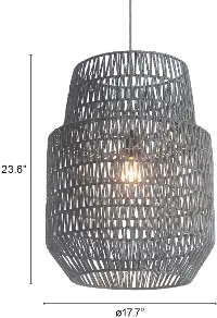 The shade material surrounds a metal architecture with a gray polyester woven thread zig zag pattern woven throughout the pattern creating a soft, see-through shade. Install in kitchens or day rooms, group over living and dining rooms, and perfect for a softer look to your modern design. Max Watt 60 W, Size E26, Type A19. UL approved and listed. Bulbs are not included, sold separately.