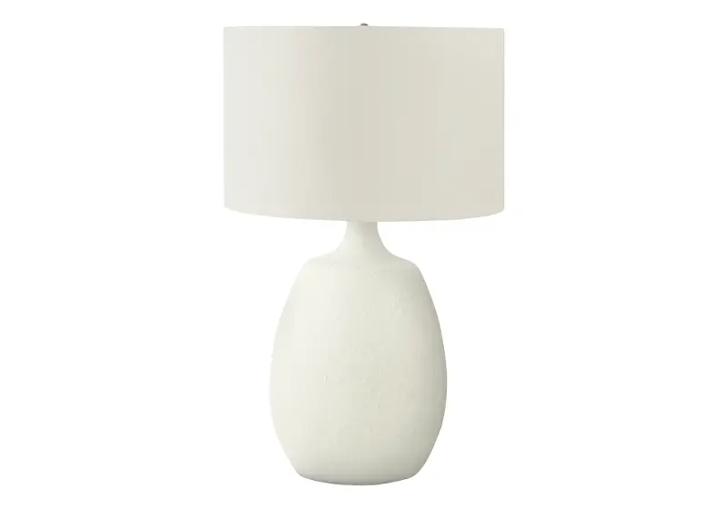 The sleek, contemporary design features a textured cream resin base and a chic linen ivory shade for an elegant touch. The 3-way switch allows you to illuminate your space to whatever ambiance suits your needs with a maximum output of 100W (bulb not included). With a 6 foot long cord, this table lamp adds a unique and practical accent whether you place it on an end or side table or your nightstand for a modern decorative lighting solution. Made with quality materials, this lamp comes with a 2-year limited warranty against manufacturer's defects for a worry-free purchase.