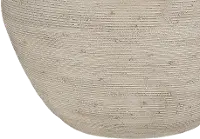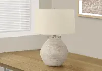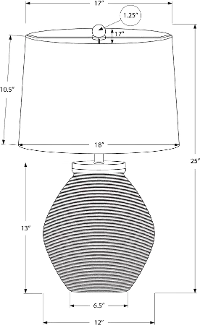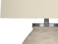 This 25" jar-shaped table lamp will add a fresh, fashionable feel to any room you place it in! Its cream-hued concrete base with textured, fine-lined ridges is elegantly completed with a beige linen drum shade finished with a round silver finial on top.