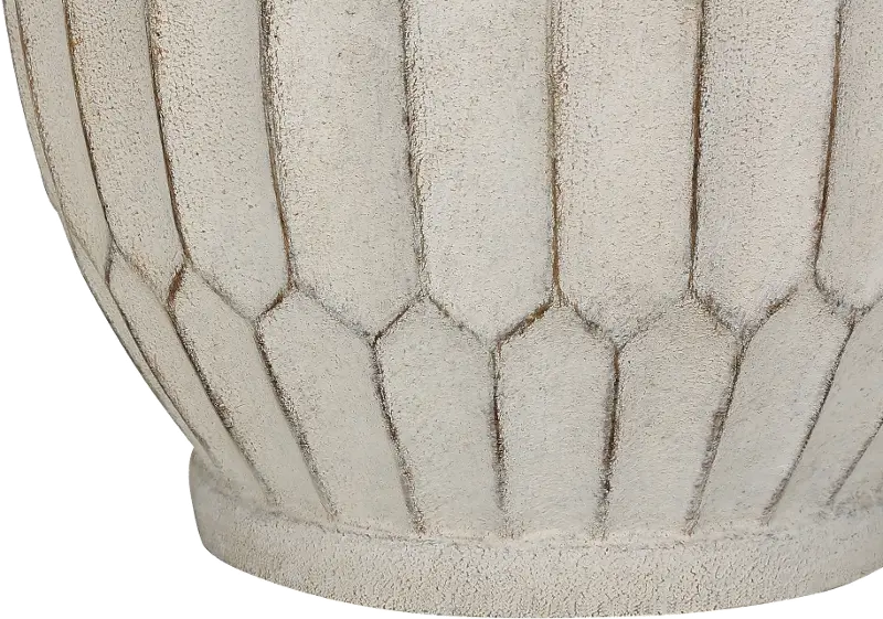 - Textured gray and cream vase-like shape