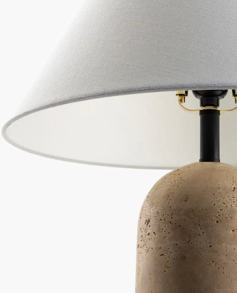This Art Deco Modern gem will add a touch of elegance to any setting. The body, made of travertine, offers a rich, natural aesthetic that pairs beautifully with the linen exterior and polystyrene interior of the shade. Its metallic finial adds an extra splash of modernity to its overall design. This lamp is not just all about looks; it's also incredibly easy to care for - simply wipe clean with a dry cloth to keep it looking as good as new. Stay away from harsh cleaners though, we wouldn't want the stunning finish to get damaged! A perfect blend of form and function, this lamp is sure to brighten up your home decor!