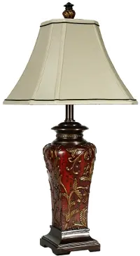 Crimson Red and Gold Floral Table Lamp