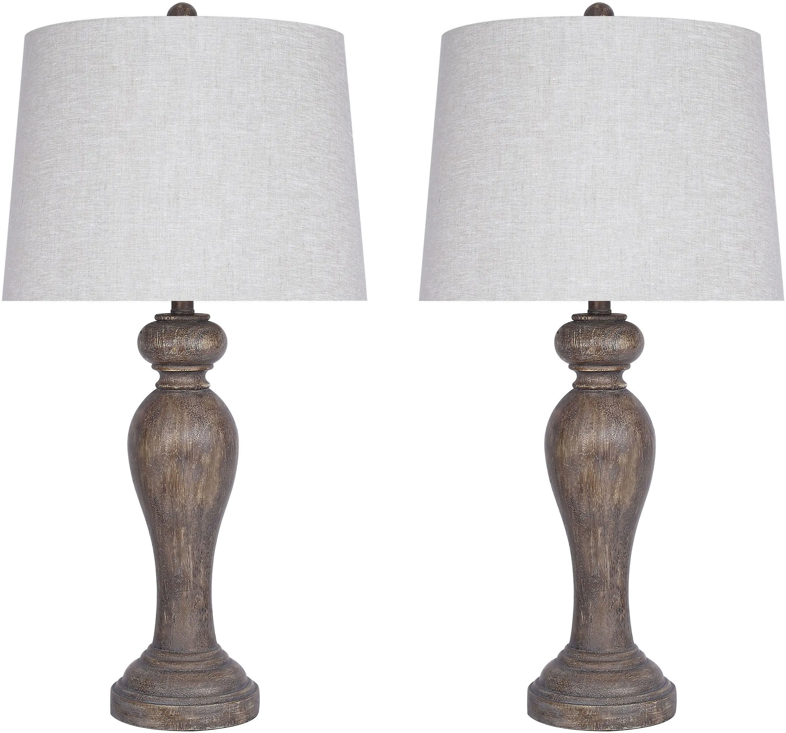 This beautiful set of polyresin table lamps features an attractive farmhouse chic look, complementing modern and reclaimed design elements.
