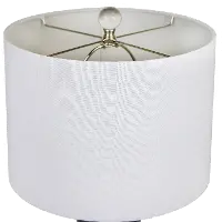 It is crowned by a white linen drum shade and crystal finial. Whether resting on your nightstand, set up in the living room, or styling up the office, this ceramic table lamp is the eye-catching solution to your lighting needs.