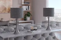 Lenuxe Nickel Table Lamps with Gray Shades, Set of 2