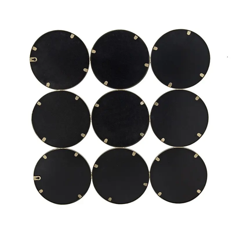 Nine individual mirrors connect to create this gold mirror.