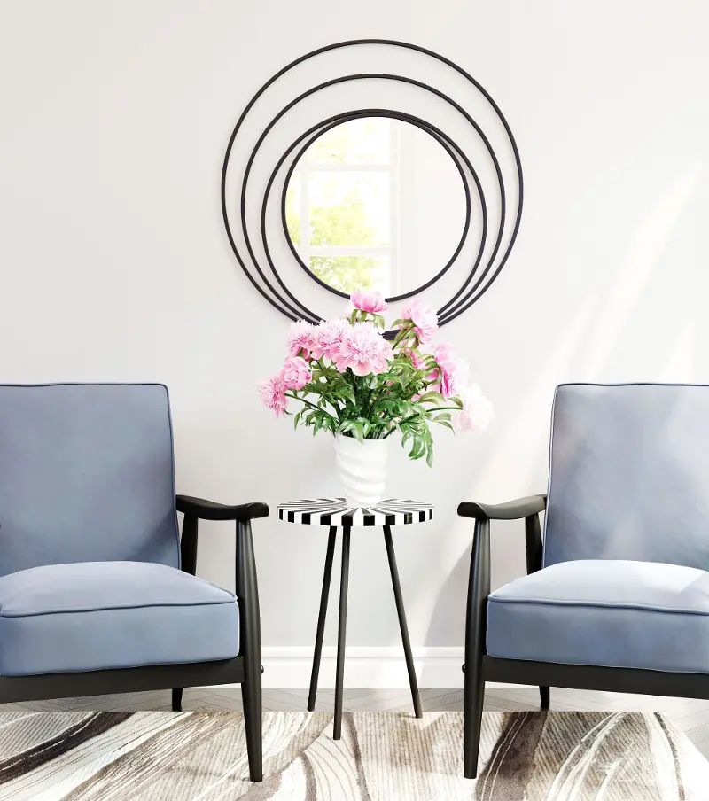 A combination of circles in all sizes create this wall mirror offered by RC Willey and will help add dimension to your living room, entryway, office, or any space that is missing a statement piece.