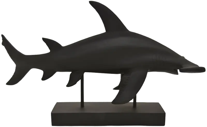 Finished in a matte black, this hammerhead shark will easily accent a bookshelf, mantel or end table.