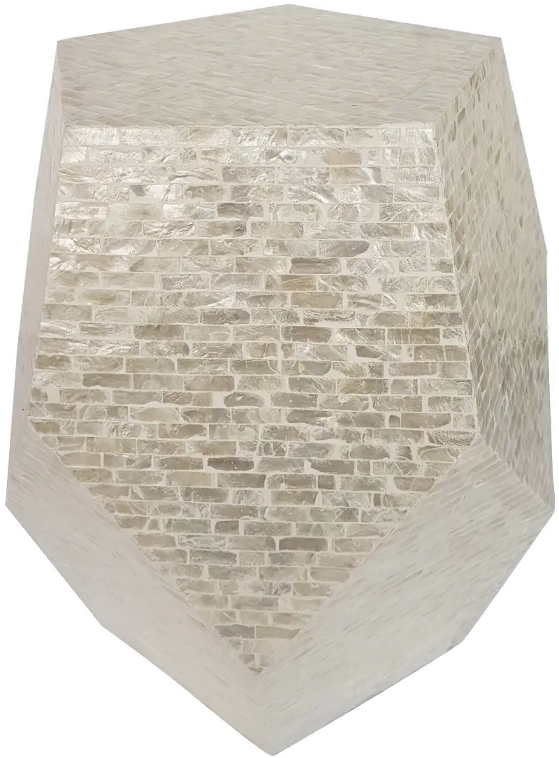 Adorned with ivory capiz shells, this 18-inch stool from RC Willey mixes function with fashion-forward style.