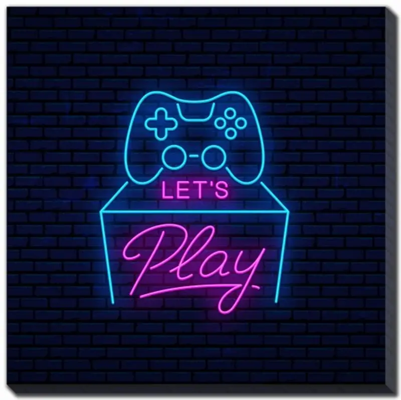 A neon gaming controller illuminates a subtle brick backdrop, casting an alluring and creative vibe into your space.