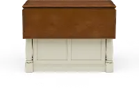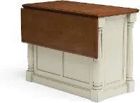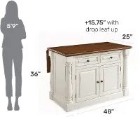 This space-saving design features a solid hardwood top and a base with columns on each corner. The combination of drawers and shelves give you the storage flexibility needed for pots and pans and countertop appliances. Extend the drop leaf bar to create valuable space for eating breakfast in the morning or entertaining in the evening.