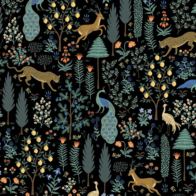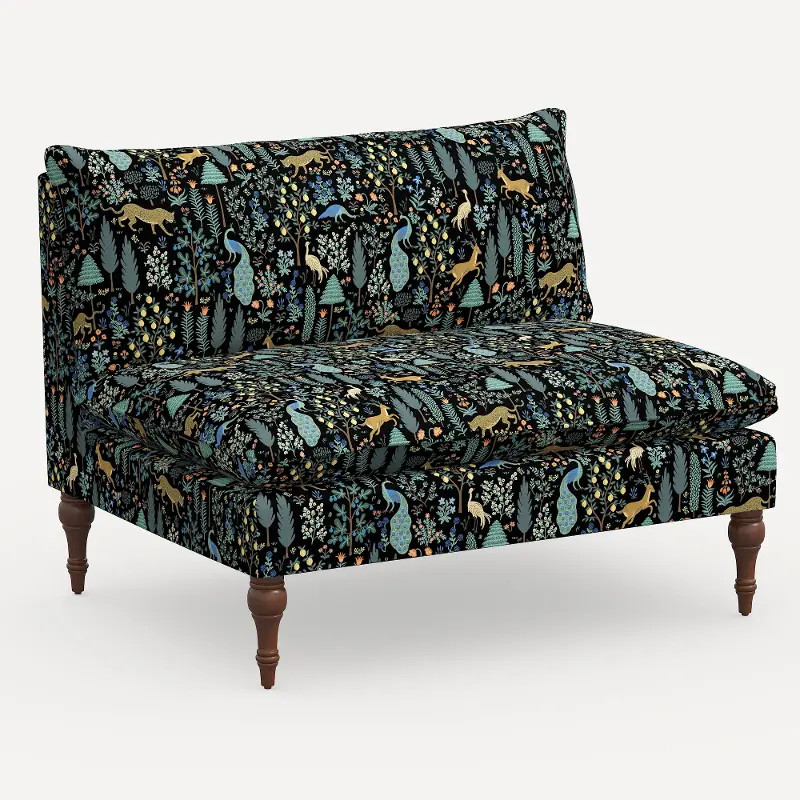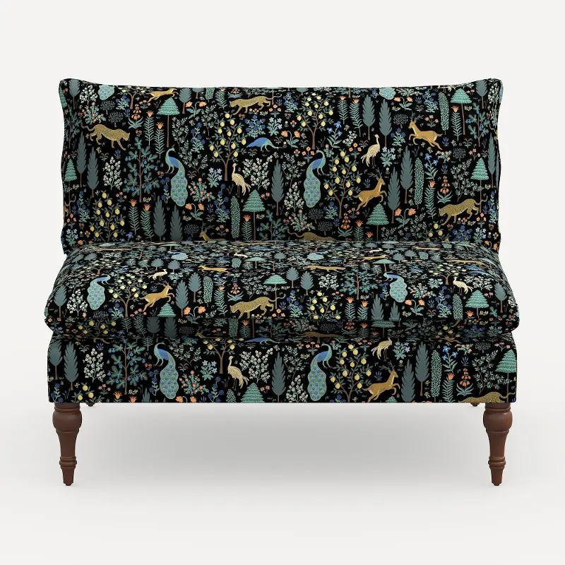Rifle Paper Co. Louie Menagerie Black Armless Loveseat