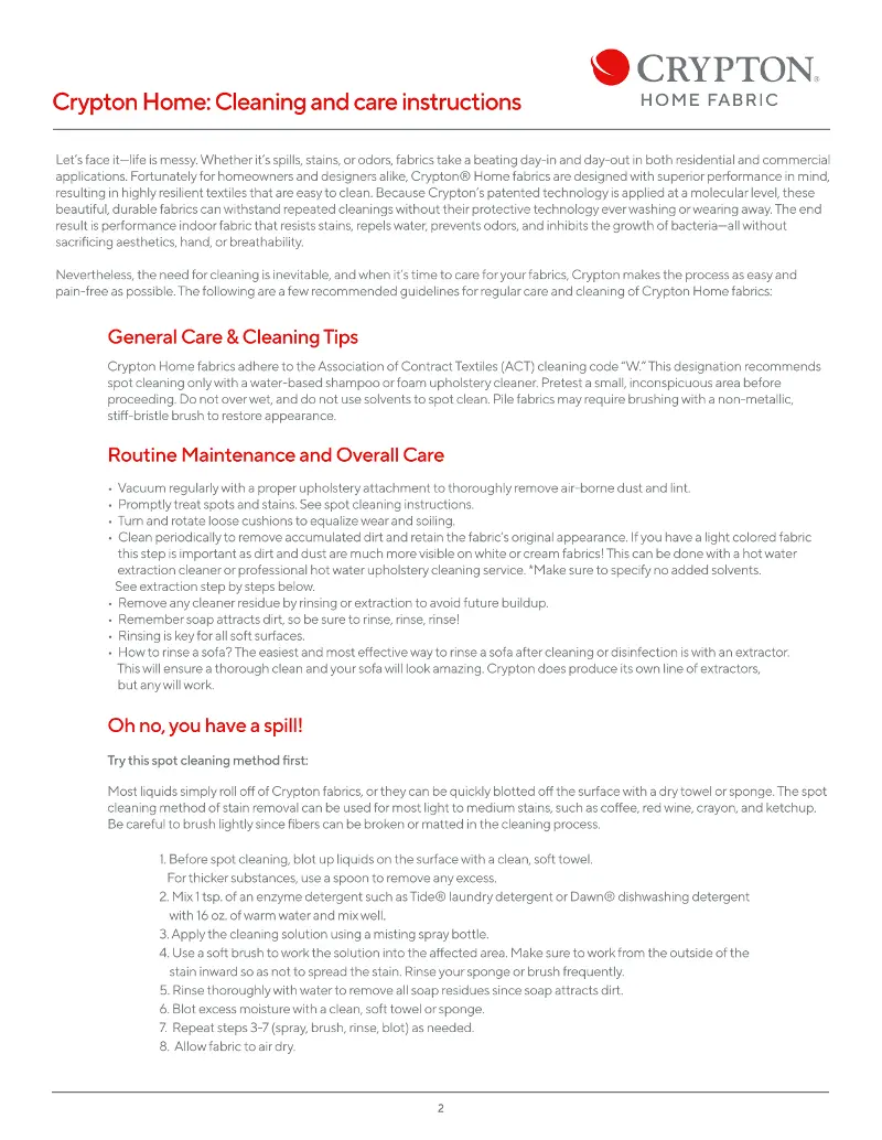 - Upholstered in Crypton Home Performance Fabric that is stain and odor resistant, east to clean, and long lasting