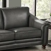 - Genuine Leather: Top-grain leather on seating areas and arms rests. Split grain leather is used on the sides and back.