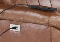 This loveseat offers luxurious comfort with its caramel brown leather seating and plush pillow arms. Equipped with power recline and adjustable headrests, it allows for personalized relaxation at the touch of a button. And it includes a USB port so you can charge your phone or tablet while you relax. This loveseat requires only 3.5 inches of wall clearance to fully recline, making it a versatile addition to various living spaces.