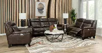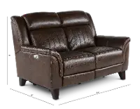 This loveseat offers luxurious comfort with its chocolate brown leather seating and plush pillow arms. Equipped with power recline and adjustable headrests, it allows for personalized relaxation at the touch of a button. And it includes a USB port so you can charge your phone or tablet while you relax. This loveseat requires only 3.5 inches of wall clearance to fully recline, making it a versatile addition to various living spaces.
