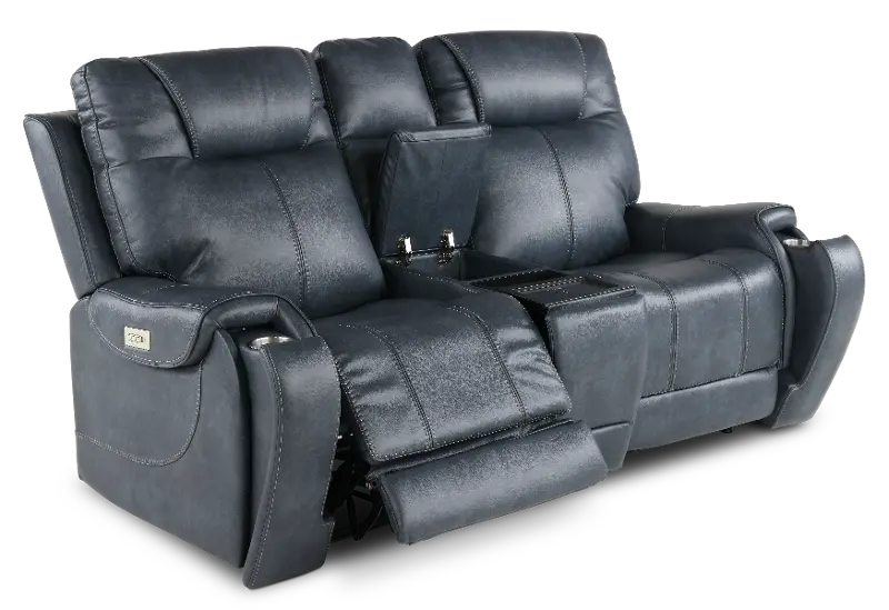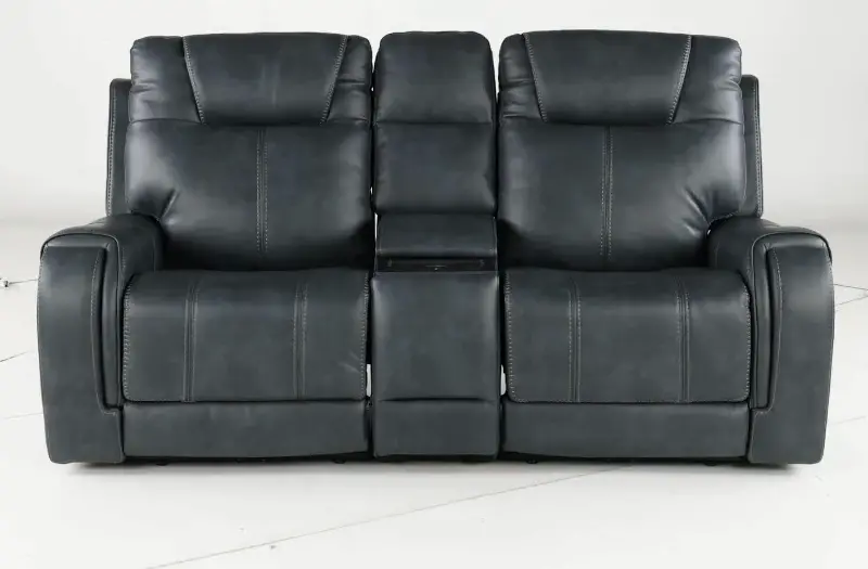 Conway Slate Gray Power Reclining Loveseat with Audio Console