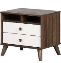 Yodi Modern Walnut Brown and White Nightstand - South Shore