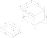 Inspired by Scandinavian design, the contrasting facade and cone-shaped wooden handles highlight the clean lines of this piece. The angled wooden legs add a fun, original touch. Its finished on all four sides, so it can go anywhere in the room. Its 2 drawers and open compartments will help in keeping your kid's room organized and tidy!