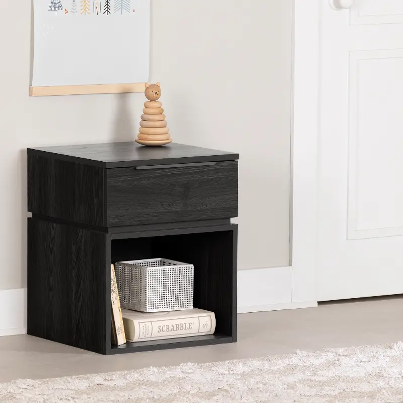 This good-looking nightstand will complete your child's bedroom decor perfectly while adding functionality. Your little one will find this trendy piece useful every day. The open space at the bottom is great for storing books – including nursery rhyme books – or those favorite toys. You can use the top drawer to store some light clothes, like socks or underwear. What about the top surface? Just add a decorative item or two and a lamp. This nightstand will be a key part of your child's bedtime or morning routine. The straight lines, minimalist look, and slim metal handle make this nightstand essential in your kid’s room.