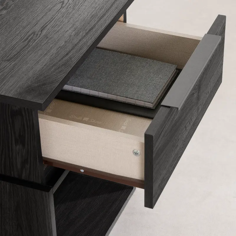 - The drawer of this nightstand is mounted on metal slides, making it easy to open and close