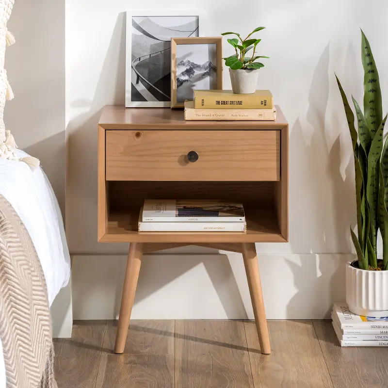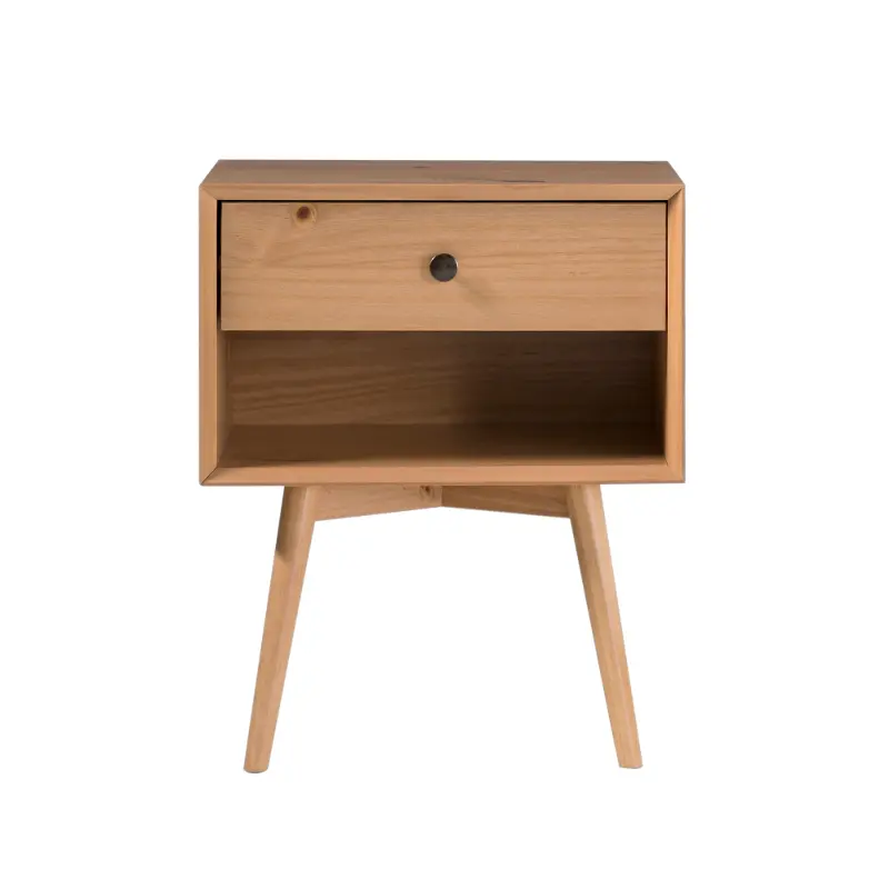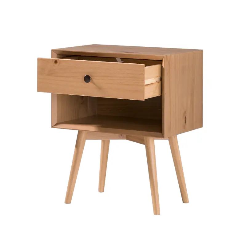 Grace your space with a subtle Mid-century modern elegance with this solid wood nightstand.