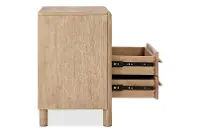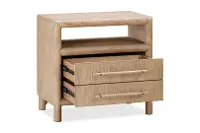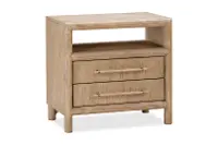 Sturdily crafted, this nightstand features a light brown finish that enhances the wood's grain and 2 full-extension drawers that make it easy to keep your items neatly stored and organized. An open compartment and a handy USB charging port make it easy to keep bedside necessities within easy reach. Curved edges and a simple silhouette make this a chic, stylish, and functional addition to your home.