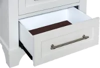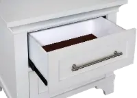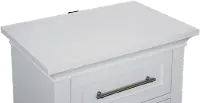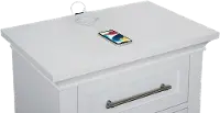 This nightstand is solidly built and finished in a crisp white. Its 2 drawers provide handy bedside storage, while chrome-finished drawer pulls add sleek, contemporary flair. A conveniently located USB port on the back of the nightstand makes it easy to keep your devices plugged in and close at hand.