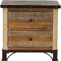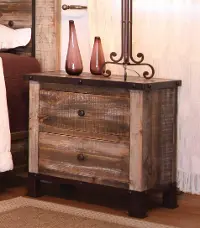 The antique collection nightstand offers a rustic aesthetic that artfully combines with contemporary charm.