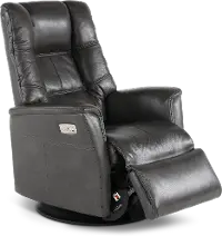 Boston Gray Leather Standard Swivel Glider Power Recliner
