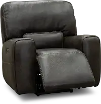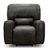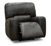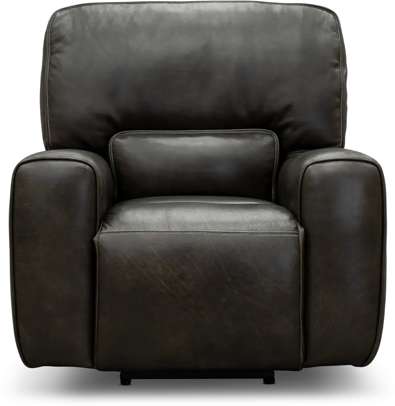 Satisfy your particular taste with this charcoal gray leather-match power recliner from RC Willey!