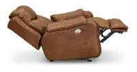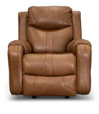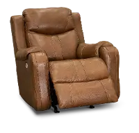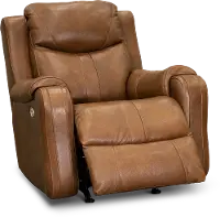 This casual amber brown leather-match power rocker recliner now available at RC Willey features the best value in motion furniture.