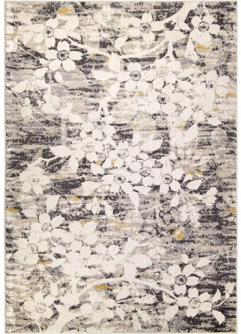 The exquisite white floral pattern emerges from a soft grey canvas, while hints of yellow dance gingerly to create a neutral and trendy design. It offers unsurpassed strength with its promised fade and stain resistance and stays heavenly soft and plush. With the polypropylene fiber being the color, this rug is incredibly easy to clean and will last for years to come.