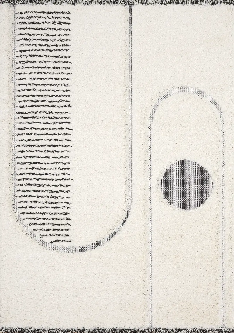 Novato Cream & Black 5 x 8 Geometric Area Rug