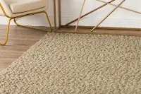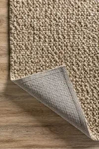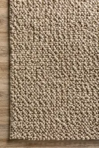 The Gorbea 8 x 10 latte wool area rug is just what you are looking for with its remarkable style that works with any space. The solid tan design was crafted with hand-loomed wool for a soft underfoot experience and lasting durability. It adds a beautiful structure to your home with its thick loop pile and chunky wool slub yarn. Place this in your living room, bedroom, or kitchen to complete your home decor!