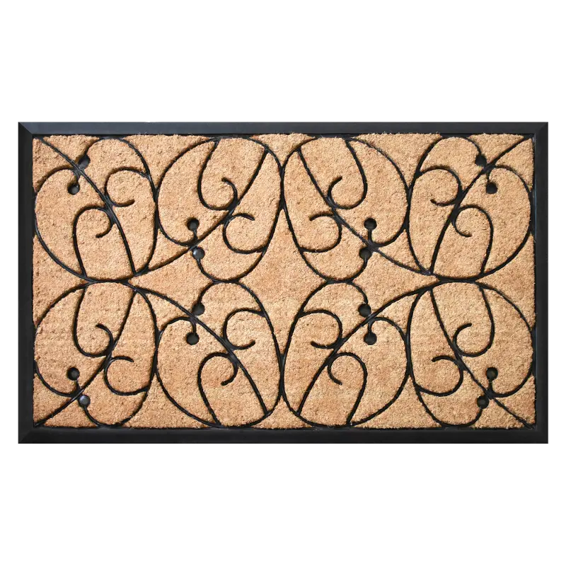 While the heavy-duty rubber adds weight and elegance, the coir acts as a natural scraper on shoes to keep debris from entering your home. Sweep or hose clean.