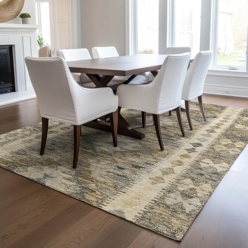 Experience the seamless blend of practicality and comfort with this tribal beige area rug from the Solace collection, bringing together distinct styles and a low-profile design.