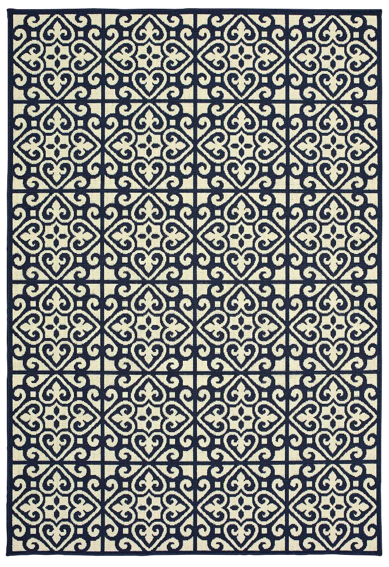 Marina 8 x 11 Large Navy and Ivory Indoor-Outdoor Rug