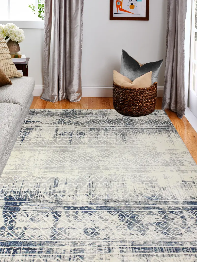 Livia Blue and Gray Bohemian 4 x 6 Area Rug