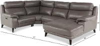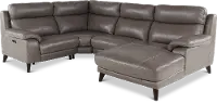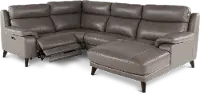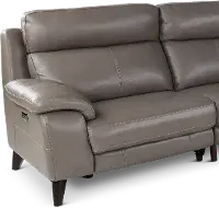 This stunning elephant gray leather-match 4 piece power reclining sectional sofa was designed with style and comfort in mind.