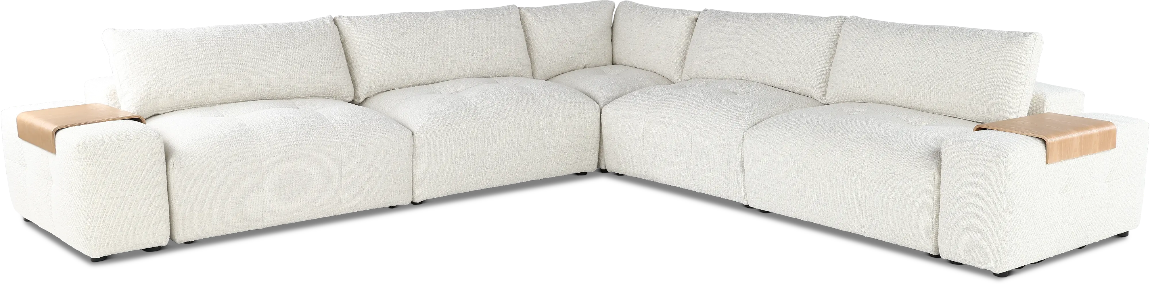 The modular Preston collection blends exceptional comfort with a simplified silhouette for a look that is as stylish as it is laid back! Sure to be a modern classic, the clean lines of this floating arm piece are covered in a durable pearl white polyester fabric that has the look and feel of Merino wool. Its modular design means it's easy to move and can be used as a stand-alone option or reconfigured with other pieces in the Preston collection to best meet the needs of your unique space. An included natural wood tray makes a handy spot for placing drinks, snacks, remotes, and more!