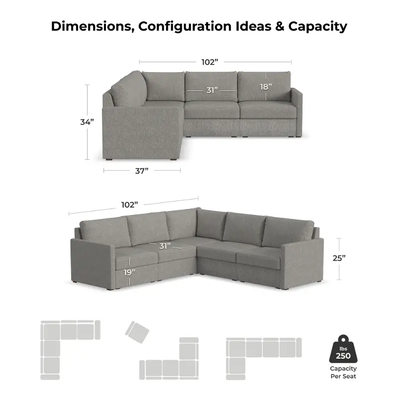 Modular components allow a multitude of configurations so you can create the perfect seating arrangement. Built with Blue Steel Spring technology and sustainable, stain-resistant performance fabric, Flex seating provides deep-seated, blissful comfort and long-lasting livability. And assembly is a breeze with a patented J-bracket “no-tool” method that takes minutes, rather than hours.