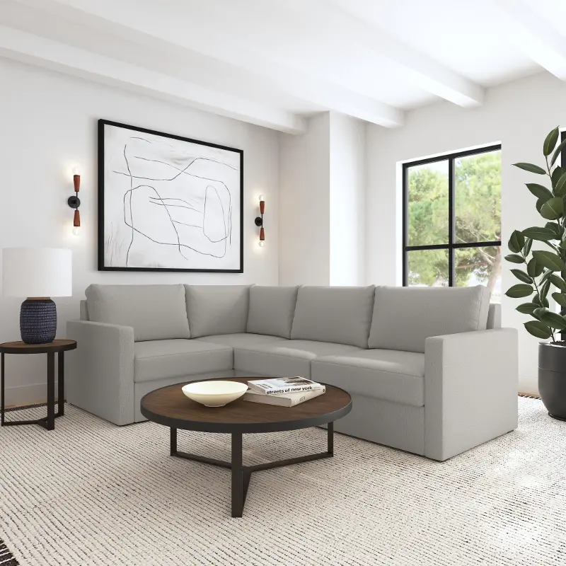 Modular components allow a multitude of configurations so you can create the perfect seating arrangement. Built with Blue Steel Spring technology and sustainable, stain-resistant performance fabric, Flex seating provides deep-seated, blissful comfort and long-lasting livability. And assembly is a breeze with a patented J-bracket “no-tool” method that takes minutes, rather than hours.