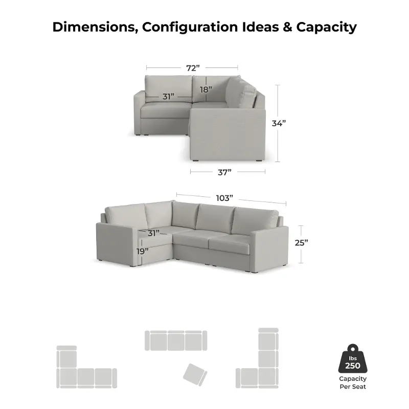Designed for a lifetime of flexibility, the Flex 4-seat sectional supports the space you have now and can easily expand when your home does.