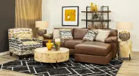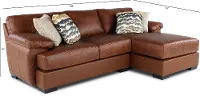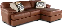 Generously scaled and solidly built, this 2-piece sectional is designed for relaxation. Its laid-back contemporary silhouette is covered in warmly hued brown leather-match, while extra-deep seating and plush yet supportive cushions make unwinding hard to resist.